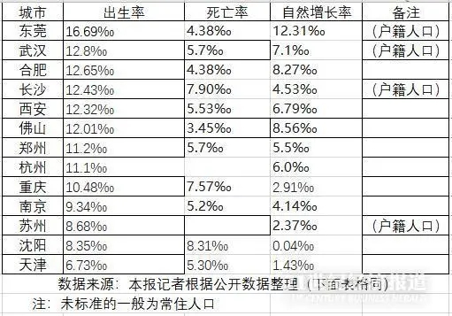 新一線城市2019年人口出生率、死亡率、自然增長(zhǎng)率一覽
