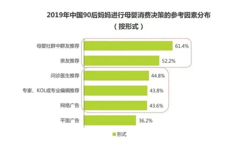 在認(rèn)知-消費(fèi)-決策的思考環(huán)節(jié)中,65.3%的90后小城新媽信賴(lài)專(zhuān)業(yè)人士背書(shū),會(huì)受到專(zhuān)家、KOL、專(zhuān)業(yè)編輯等知識(shí)型內(nèi)容推薦吸引而進(jìn)行購(gòu)買(mǎi)