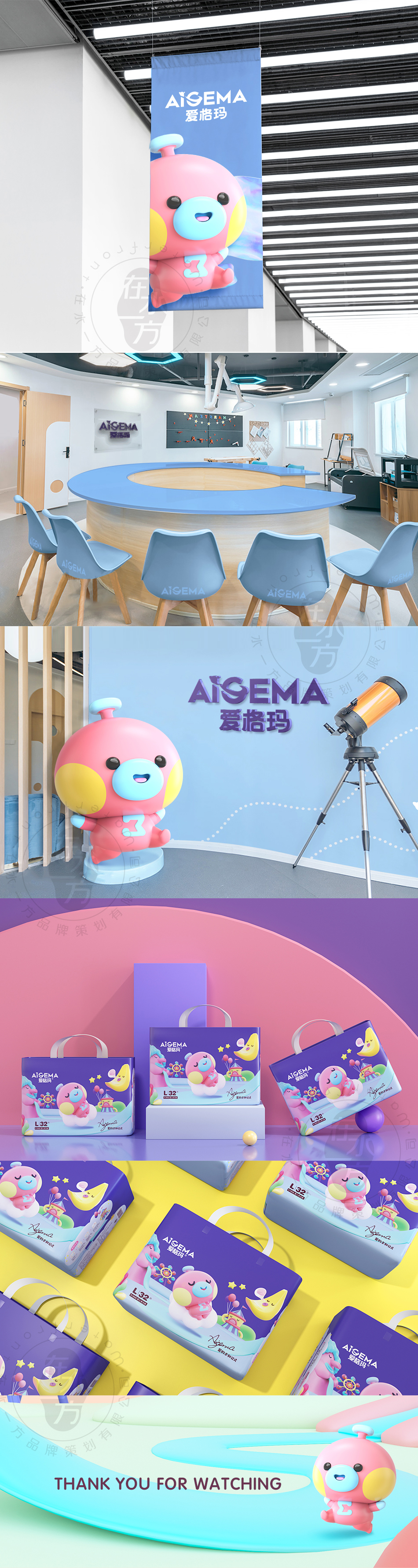 服務方案:愛格瑪品牌符號化IP化,形成更具品牌內涵的視覺體系,并產生可與母嬰人群實現有效溝通的內容。3D技術對愛格瑪星球概念的加持顯而易見,從產品形象構建上完成對愛格瑪品牌的全面升級,使得品牌風格更為適應消費市場需求。